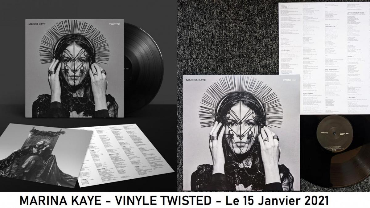 Vinyle twistedLe 15 Janvier 2021, le Vinyle TWISTED de Marina Kaye est enfin sorti sur sa boutique officielle. Il y était déjà en pré-commande depuis décembre 2020. Pour ceux qui l'on pré-commandé, le vinyle est arrivé le jour de la sortie ou quelques jours plus tard.